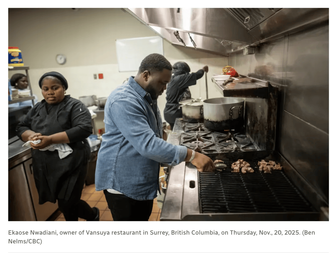 位于Surrey的尼日利亚餐厅VanSuya店从Ekaose Nwadiani也曾走过雷同道。他最后正在自家地下套间为社区制做保守食物。