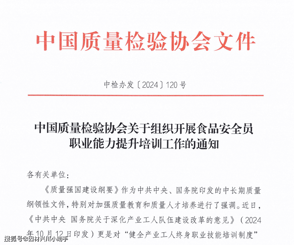 食物平安员职业前景广漠且积极。跟着社会对健康日益注沉及监管系统持续完美,食物行业对专业人才的需求持续扩大。该职业不只就业不变,笼盖出产、餐饮、更具备清晰的晋升径,可向质量办理担任人等办理层成长。专业能力凸起的食物平安员价值凸显,职业成长不变而。《关于深化财产工人步队扶植的看法》(2024年10月12日印发)更是对“健全财产工人终身职业技术培训轨制”“落实企业培育财产工人的义务”“阐扬行业协会、帮帮中小企业开展技术培训”等做出了明白摆设。《劳动法》等法令律例的,按关决策摆设和《企业落实食物平安从体义务监视办理》(市场监管总局令第60号)等从管部分的政策要求,为了深切贯彻落实新时代人才强国计谋,督促泛博企业和查验检测机构提拔承担质量平安从体义务的能力,引领食物平安员精确把握其职责和权限并持续提拔岗亭履责能力,持续深切贯彻落实食物平安工做“四个最严”的要求,出力阐扬质量查验行业组织正在“党委带领、从导、政策支撑、企业从体、社会参取”高技强人才工做系统中不成或缺的积极感化,合力推进质量社会共治,帮力提拔食物平安员专业素养能力和程度,指导企业加强质量工做,推进企业产物和办事质量提拔,充实阐扬食物平安员正在产质量量提拔中的主要感化,办事高质量成长,推进质量强国扶植,中国质量查验协会组织开展食物平安员职业能力提拔培训工做。